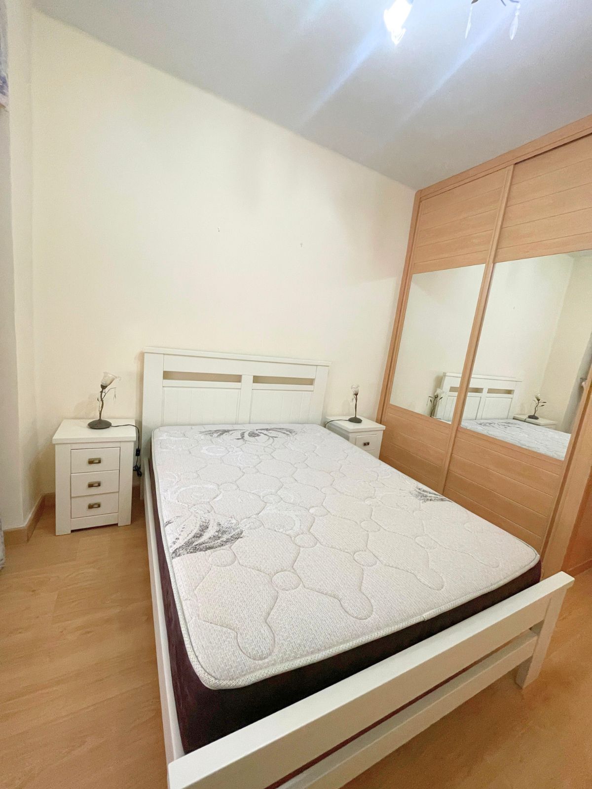 El piso cuenta con 52 metros cuadrados, 3 habitaciones (2 con terraza), 1 baño completo con piso de ducha, cocina equipada, piso con muebles, radiadores en cada habitación, 1 armario empotrado. Ubicado en segunda planta, exterior, sin ascensor.